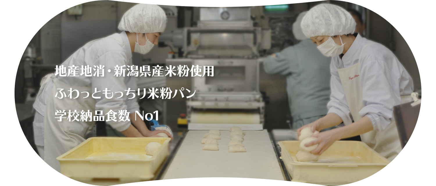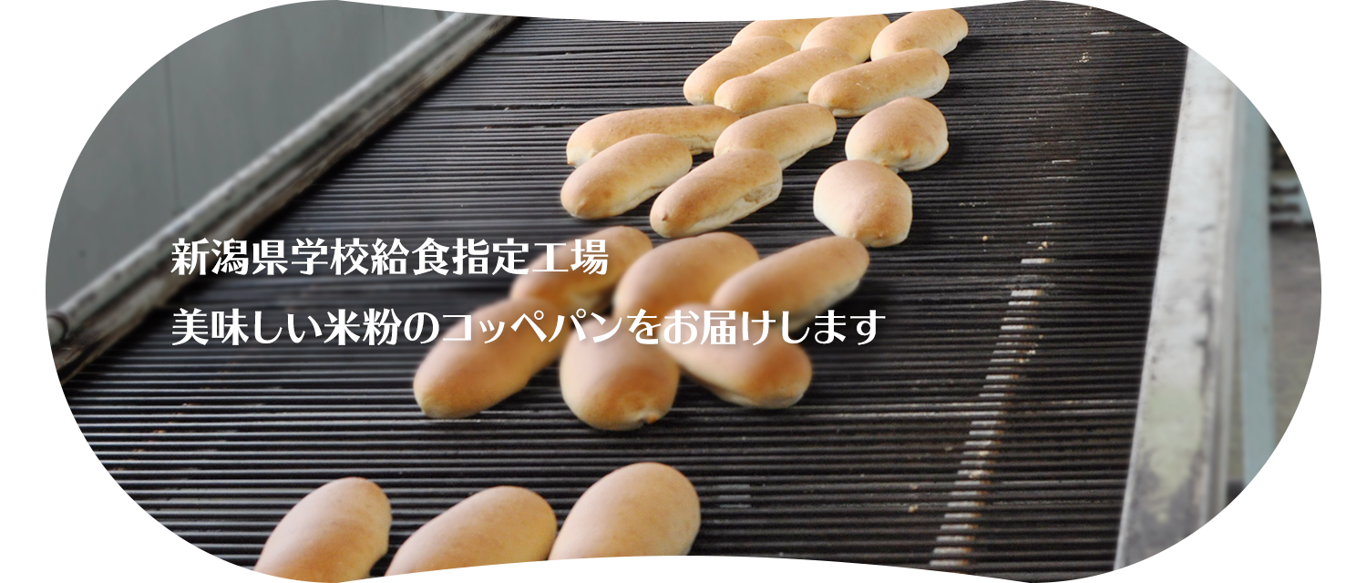地産地消、地元新潟でとれたお米の米粉を80%使用したコッペパンを作っています。